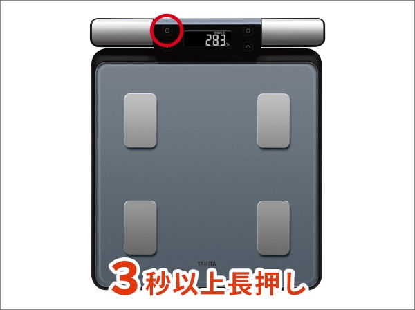 体組成計の取扱説明書(P14)に従って、「個人データの登録」を進め、通信の有無の設定を「YES」にする。
