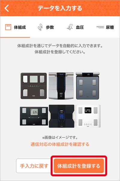 「体組成計を登録する」ボタンをタップ。