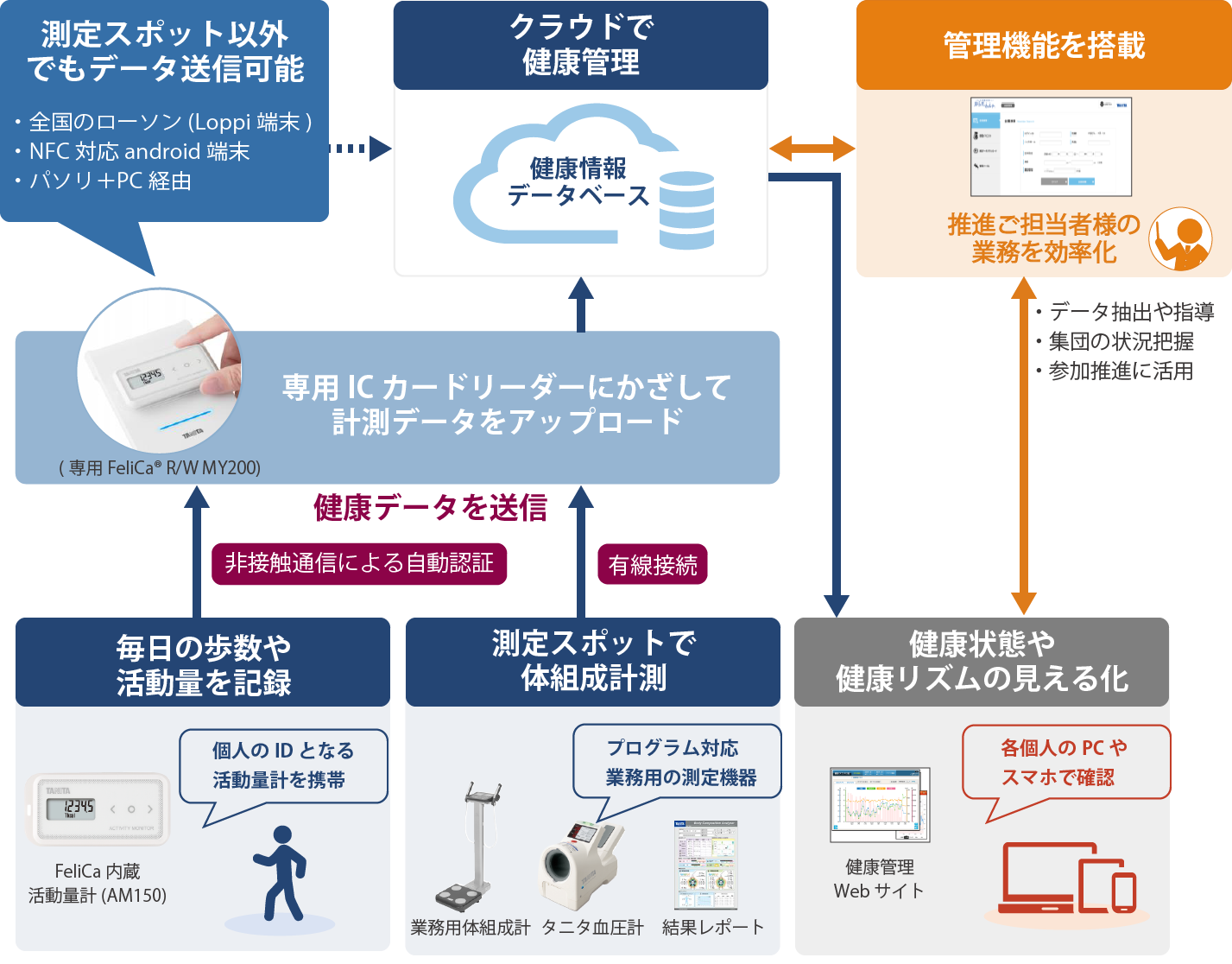 ピッ!とデータ送信するだけで日々の健康情報を保管できるシステムをご提供します。