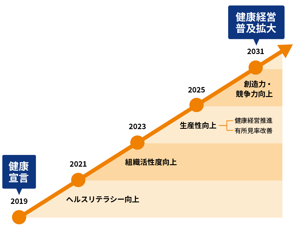 ※健康企業宣言とは、健康優良企業「銀の認定」「金の認定」を目指して、企業全体で健康づくりに取り組むことを宣言すること。健康企業宣言は、全国健康保険協会の登録商標。