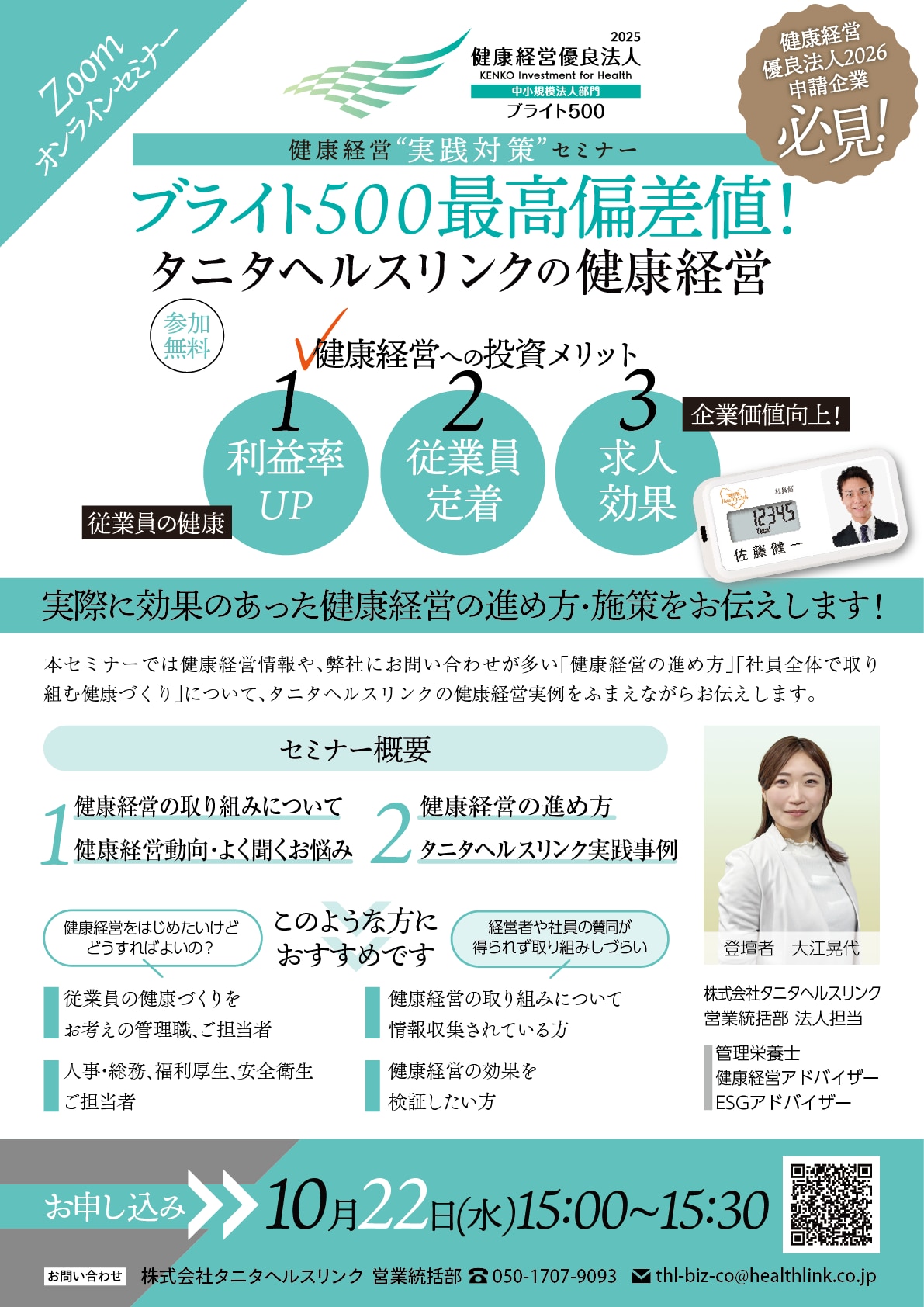 ブライト500最高偏差値!タニタヘルスリンクの健康経営