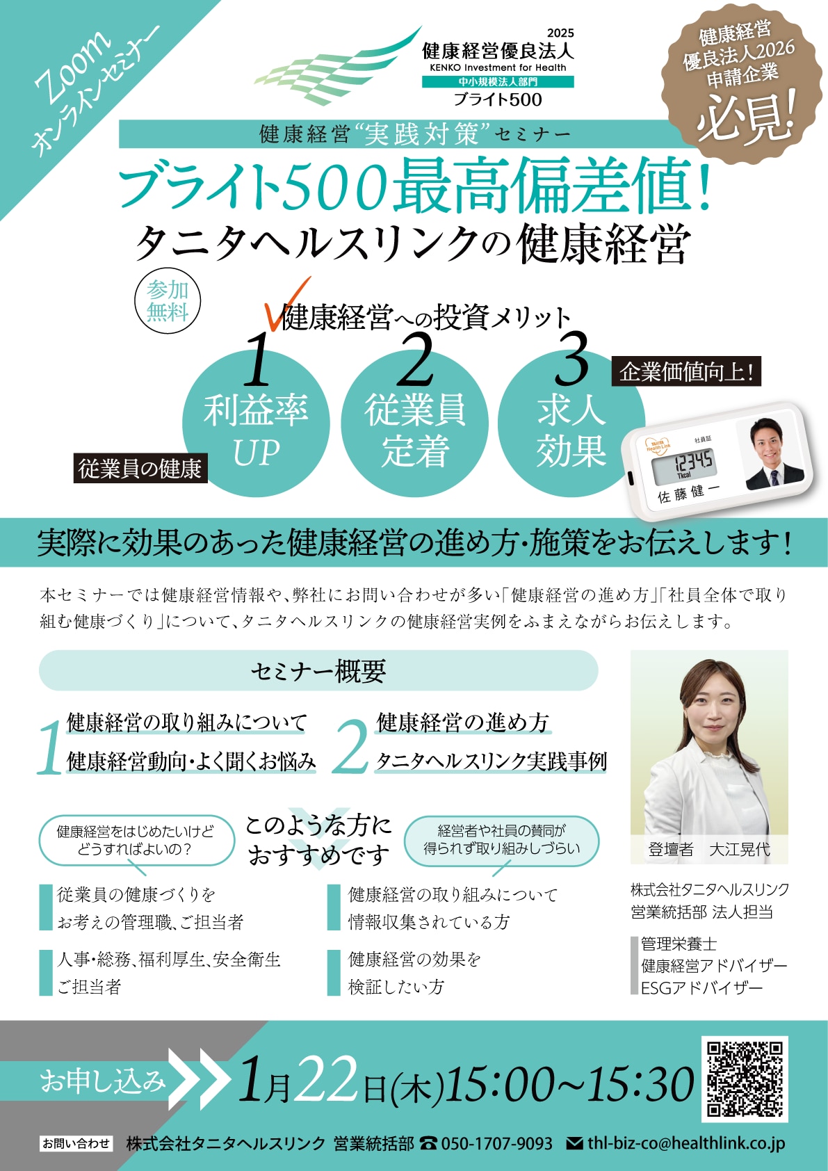 ブライト500最高偏差値!タニタヘルスリンクの健康経営